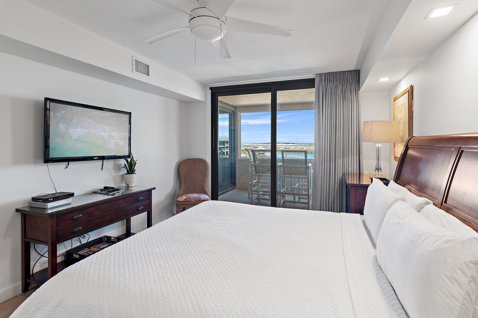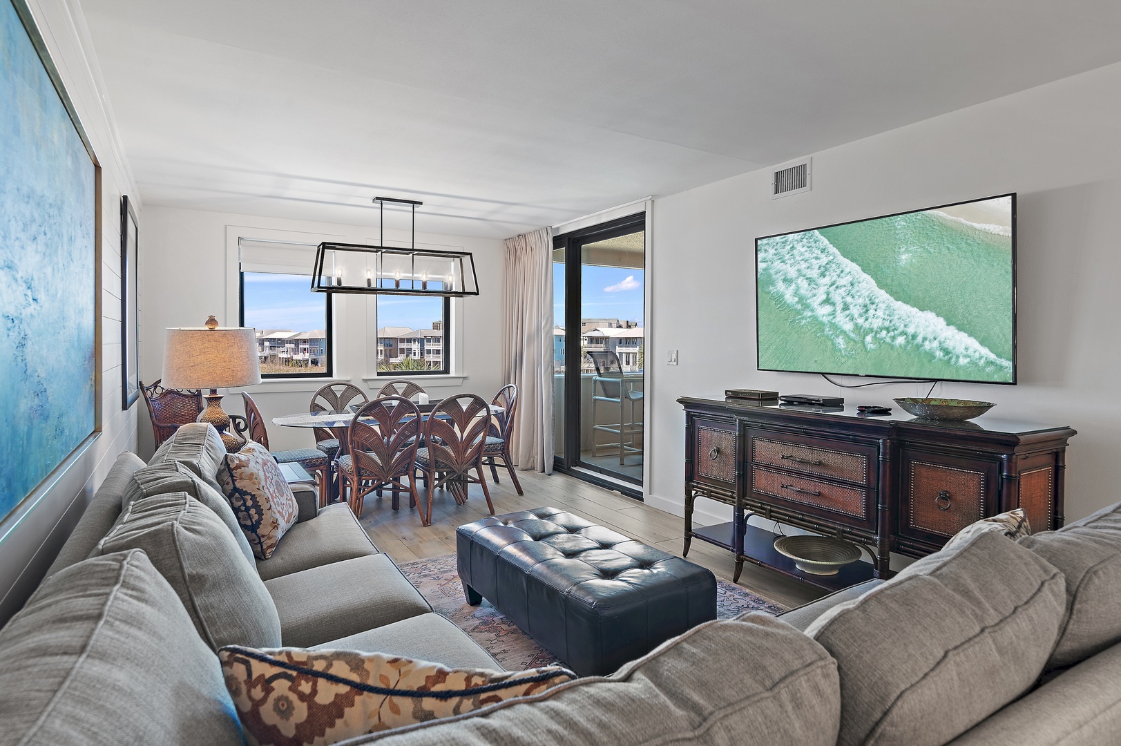 After a long day at the beach, enjoy watching the boats come in from your private balcony as you view another beautiful Destin sunset over the jetties or get comfy in the living room that offers you plenty of seating with a large sectional sleeper sofa. You will enjoy lots of natural light and gorgeous views of the jetties from the two large living room windows and large glass slider. Want to watch the seasonal fireworks shows? You can do it right from your own balcony.