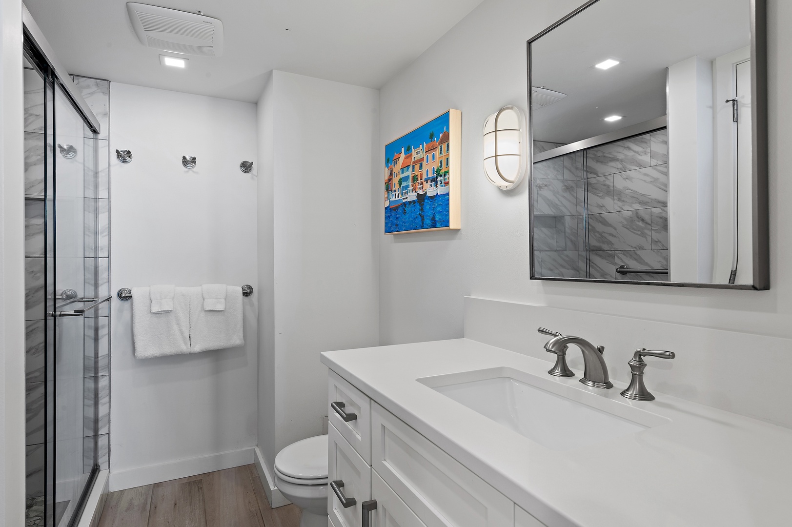 *Master bathroom has a large walk-in shower with multiple shower heads, and new quartz vanity with plenty of storage