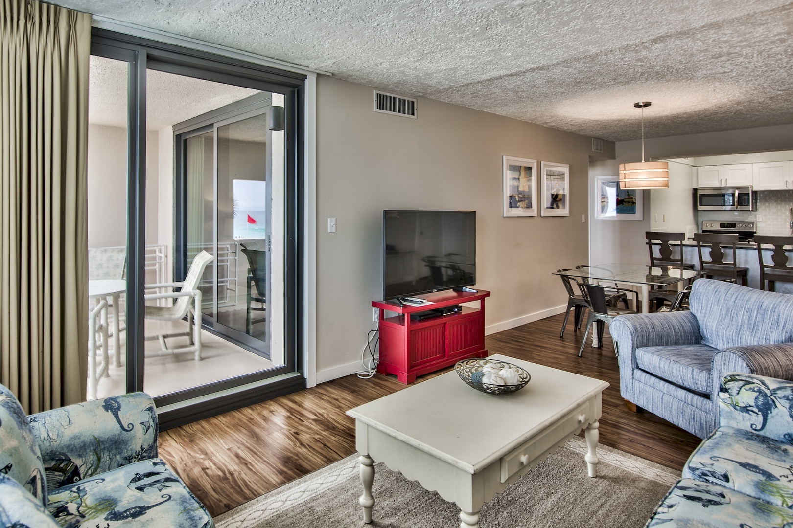 1st Floor, Two Bedroom/ Two Bath, You will enjoy the fabulous view of the pool and the Gulf from the balcony. You will appreciate the clean and modern look of the Luxury Vinyl Plank flooring throughout the kitchen, bedrooms and living areas. You can enjoy cooking in the updated kitchen as you look out and enjoy the view of the beautiful Gulf.