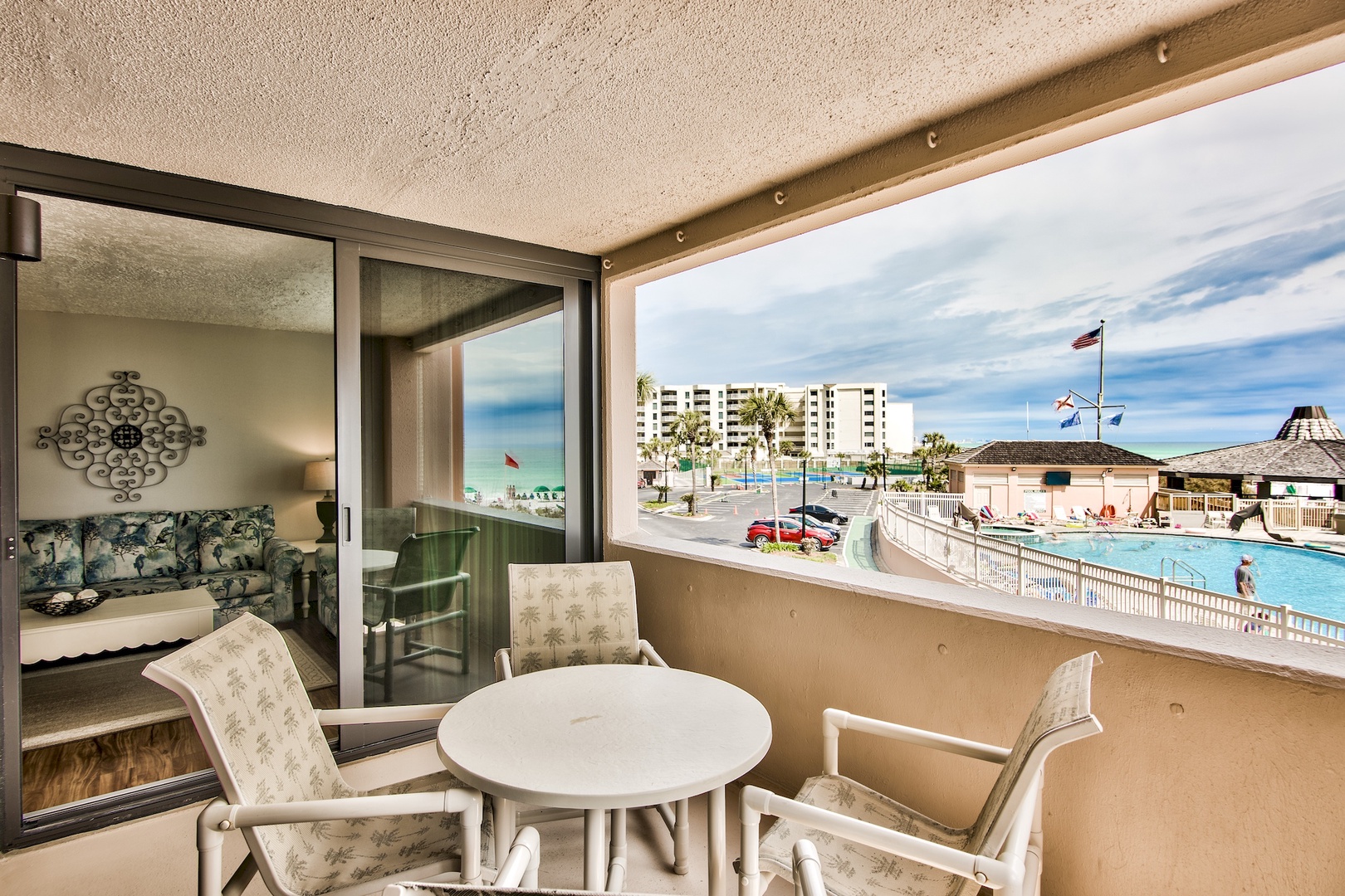 - Open Balcony with Table and Seating for Four, Directly Overlooking the Swimming Pool and Gulf of Mexico