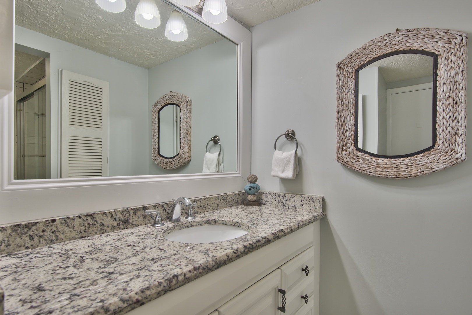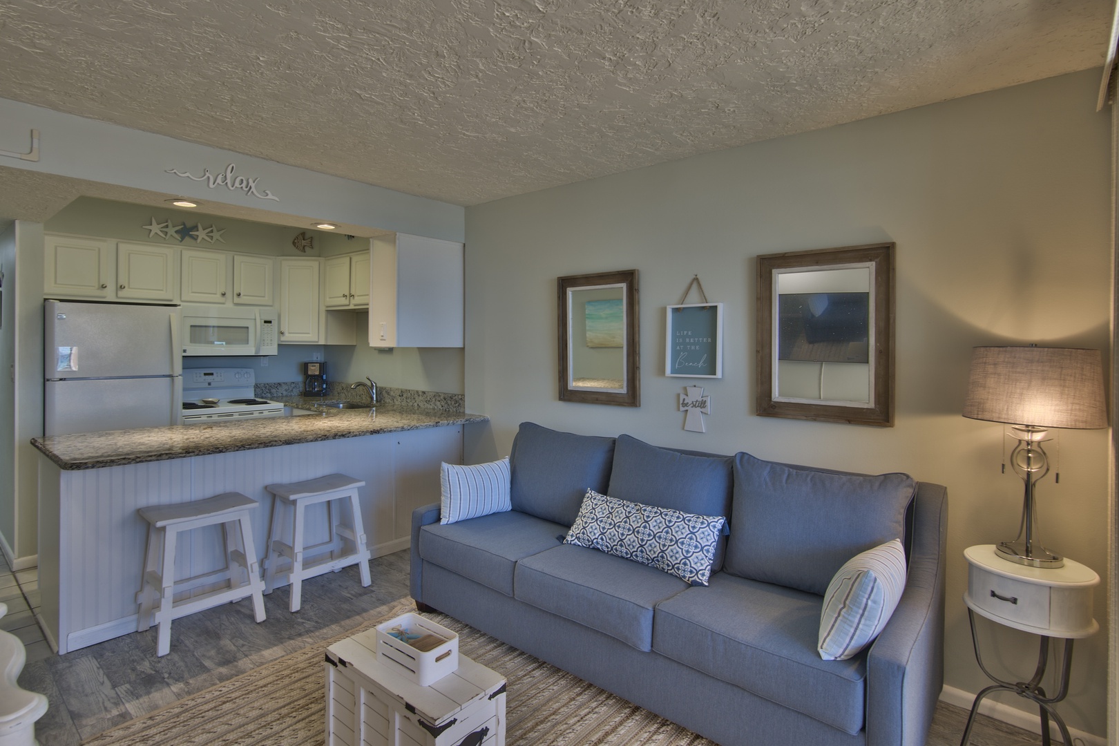 * Convenient Amenities – 65” mounted smart TV in Living Room, 32” mounted smart TV, alarm clock with USB charging, free Wi-Fi, complimentary linen exchange, Washer/Dryer, Iron, Ironing Board, Hair Dryer
