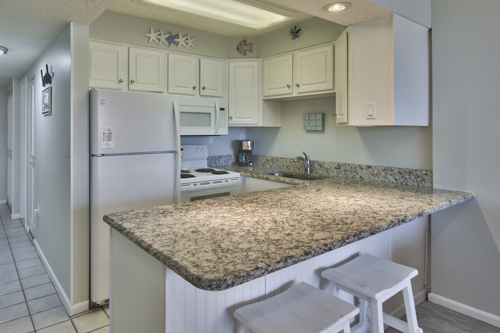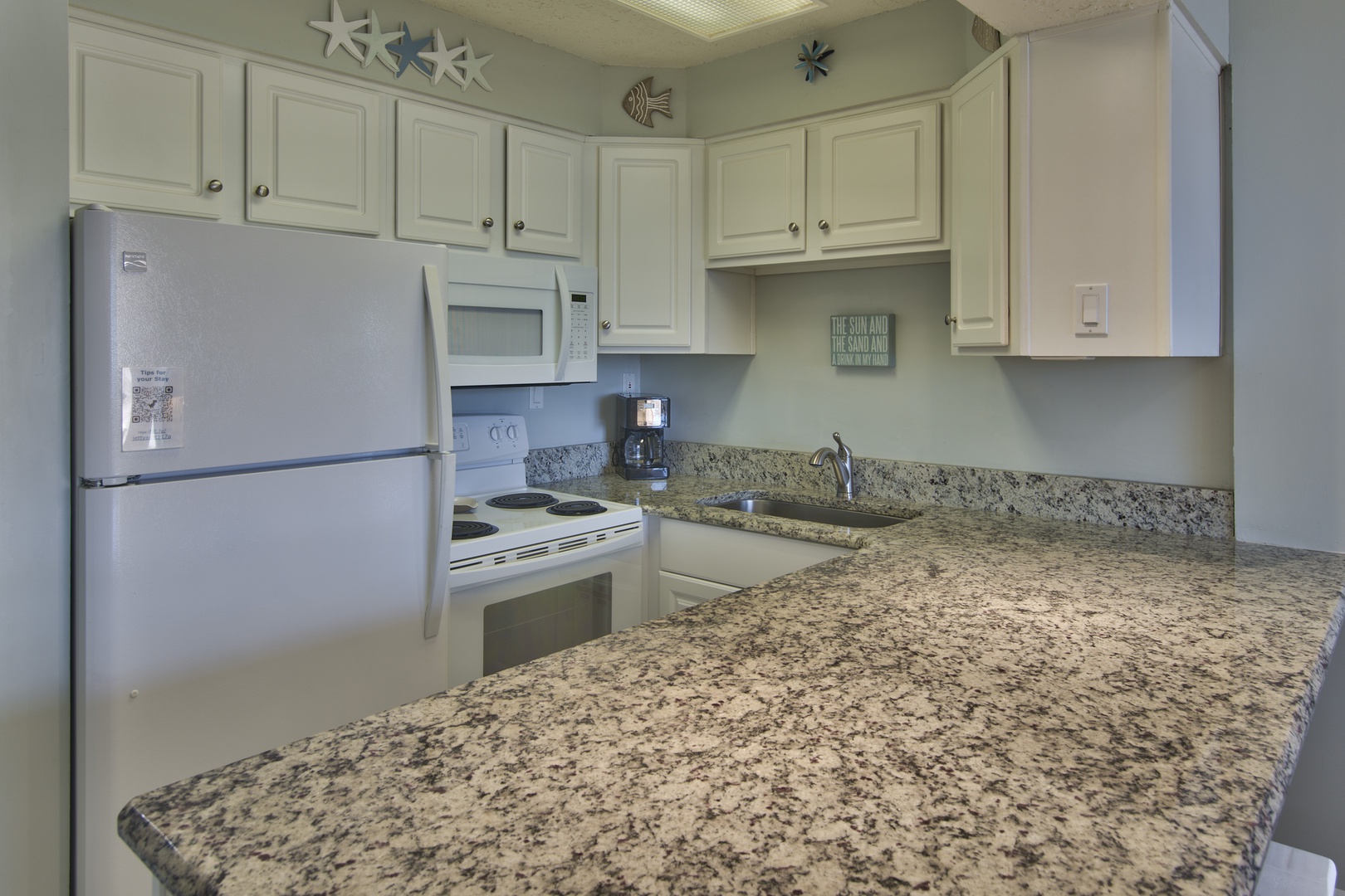 * Fully Stocked Kitchen – featuring a >>>Keurig<<< coffee maker, standard coffee maker, Granite countertops, bar seating, and all the essentials