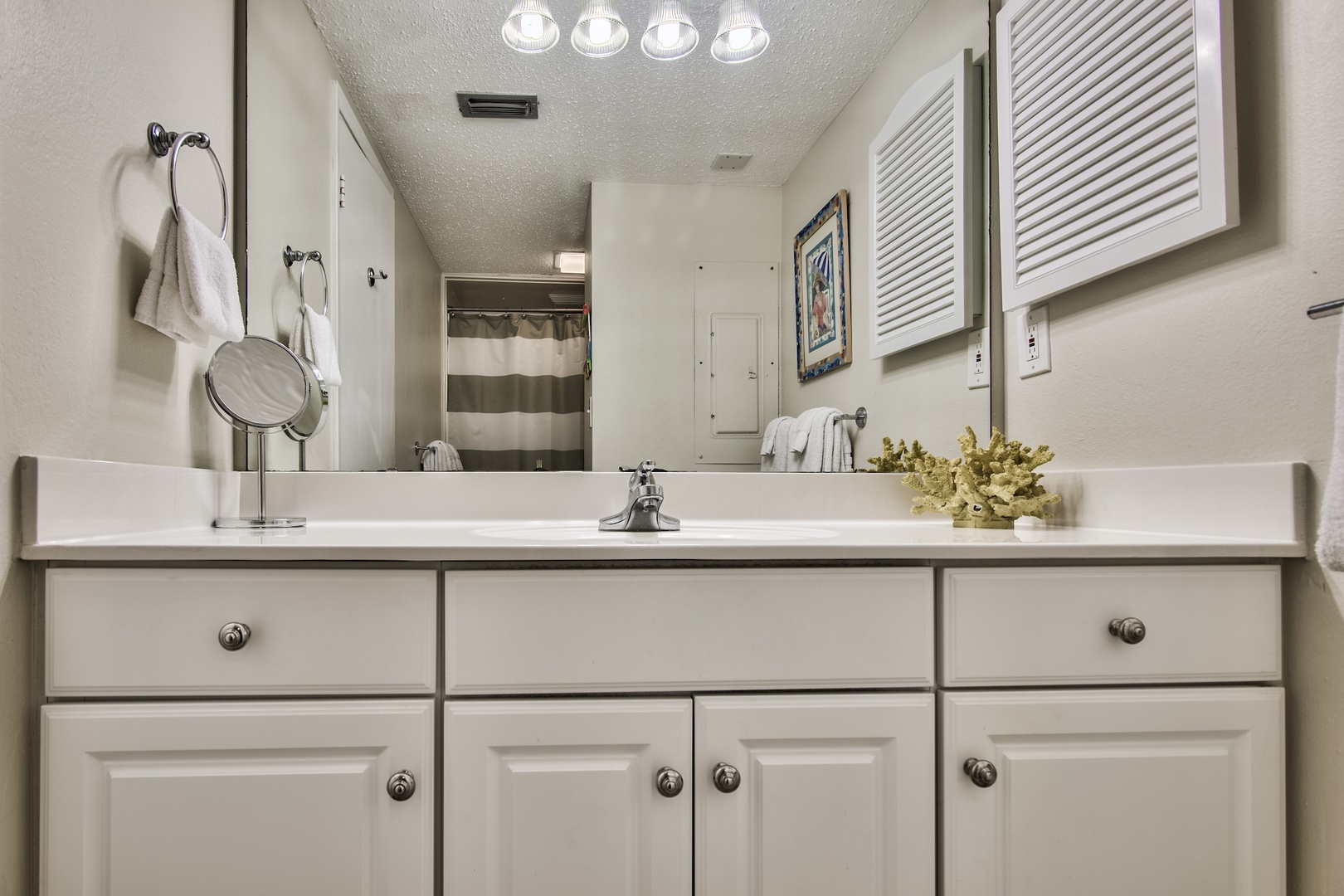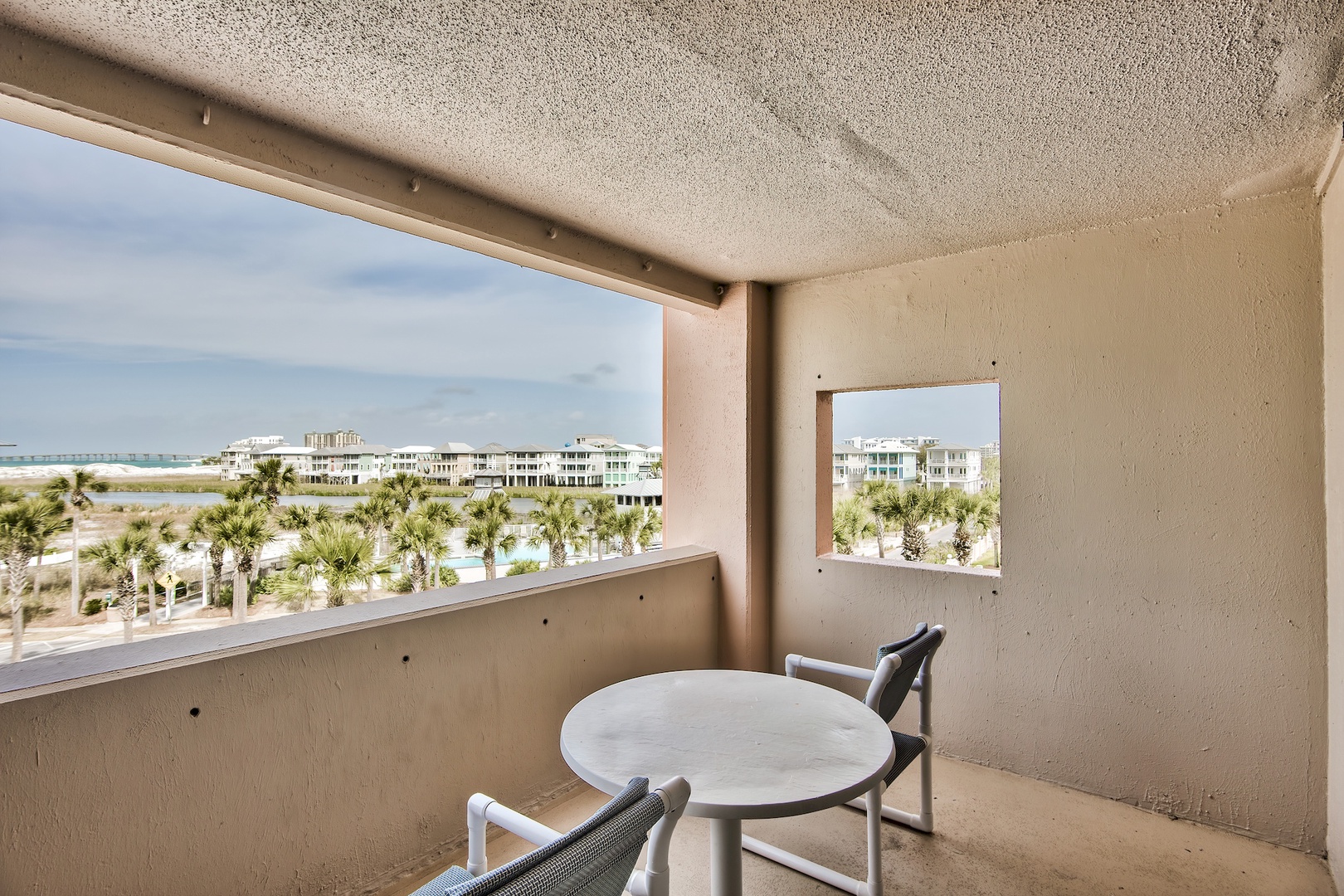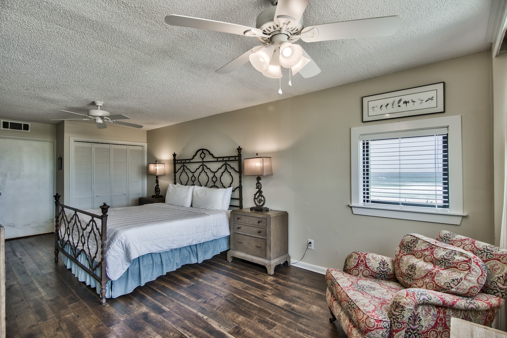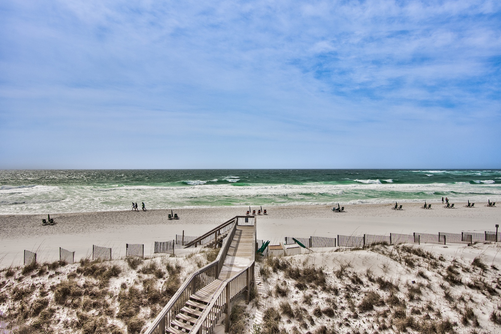 2nd Floor, Three Bedroom, Three Bathroom, King Size Bed in Master, King Size Bed in Bedroom Two, Two Double Beds in Bedroom Three, Sleeper Sofa in Living Area. This is a Fabulous Corner Unit with Beach, Gulf, and East Pass Views. It has two Open Balconies and one Enclosed Balcony. It has Two Living Areas and Two Dining Areas. The Main Living Area has a Large LCD TV and DVD Player and a lift recliner. It is also equipped with four additional TVs. **Master bath is handicapped accessible. You can roll wheelchair completely into shower. It has a corner seat, handheld shower-head; 4 handrails inside shower**
