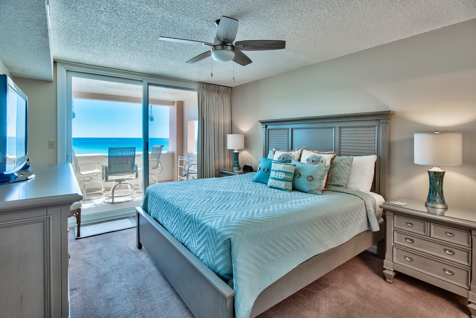 Gulf side - 3rd Floor, Two Bedroom/ Two Bathroom,: King-size bed in master bedroom, two double beds in second bedroom. New (2025) sleeper sofa is a major quality upgrade as compared to typical sleeper sofas.