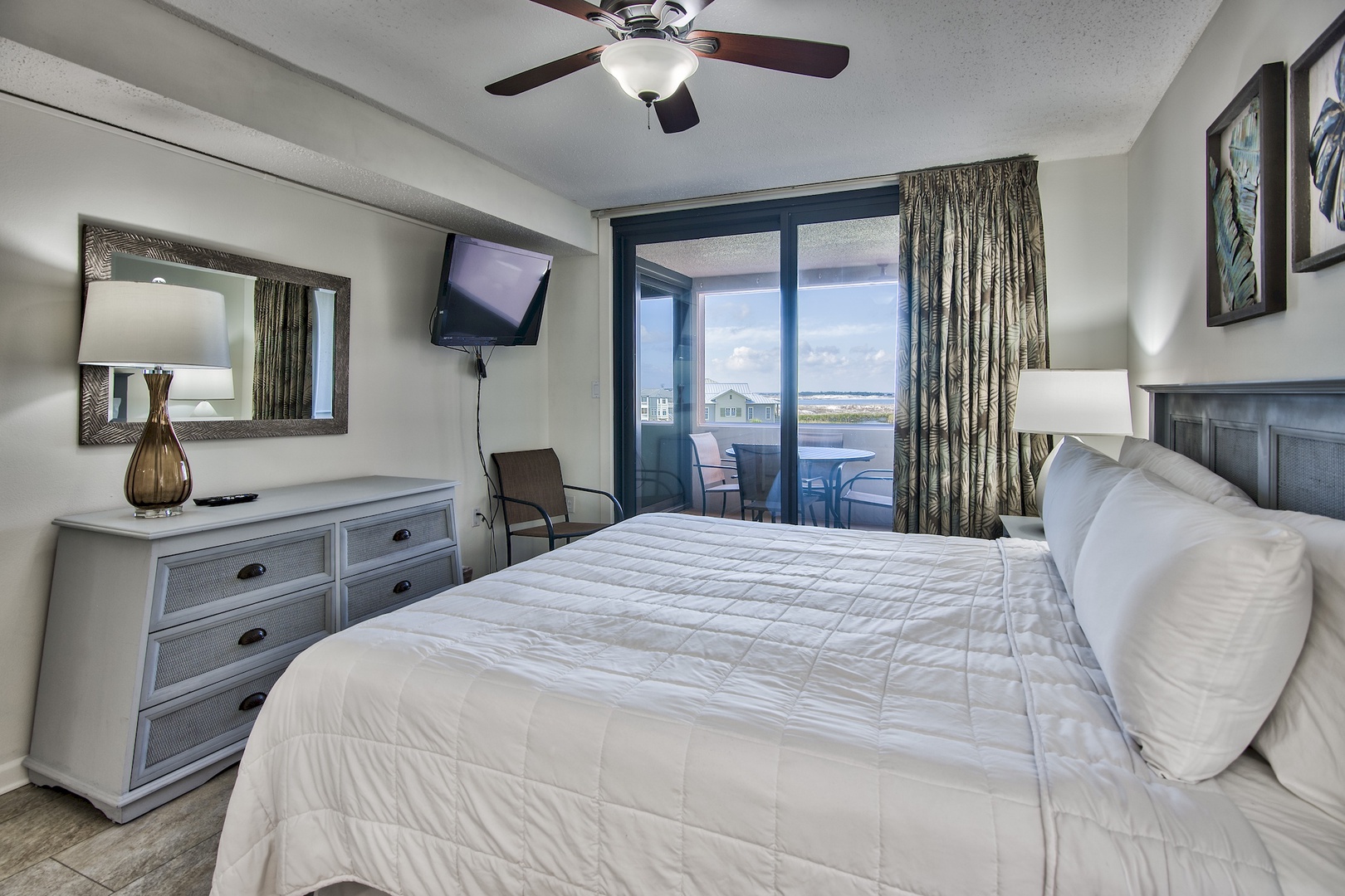 After a sun-filled day at the beach settle down comfortably on the balcony to enjoy the beautiful sunset from this Jetty View condo. Guest will enjoy easy access to nearly 800 feet of private, sugar-white sand beach front. Guest will also have access to other on-site amenities including a heated pool, fitness room, and tennis/pickleball courts. Free Wi-Fi and 24-hour courtesy patrol service are also included in your stay at Jetty East.