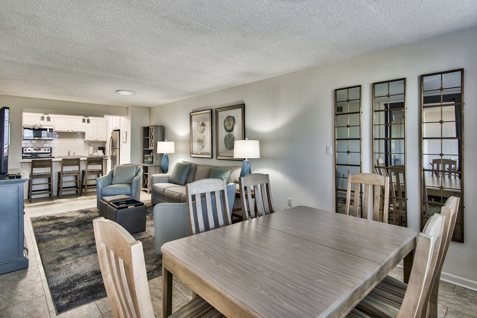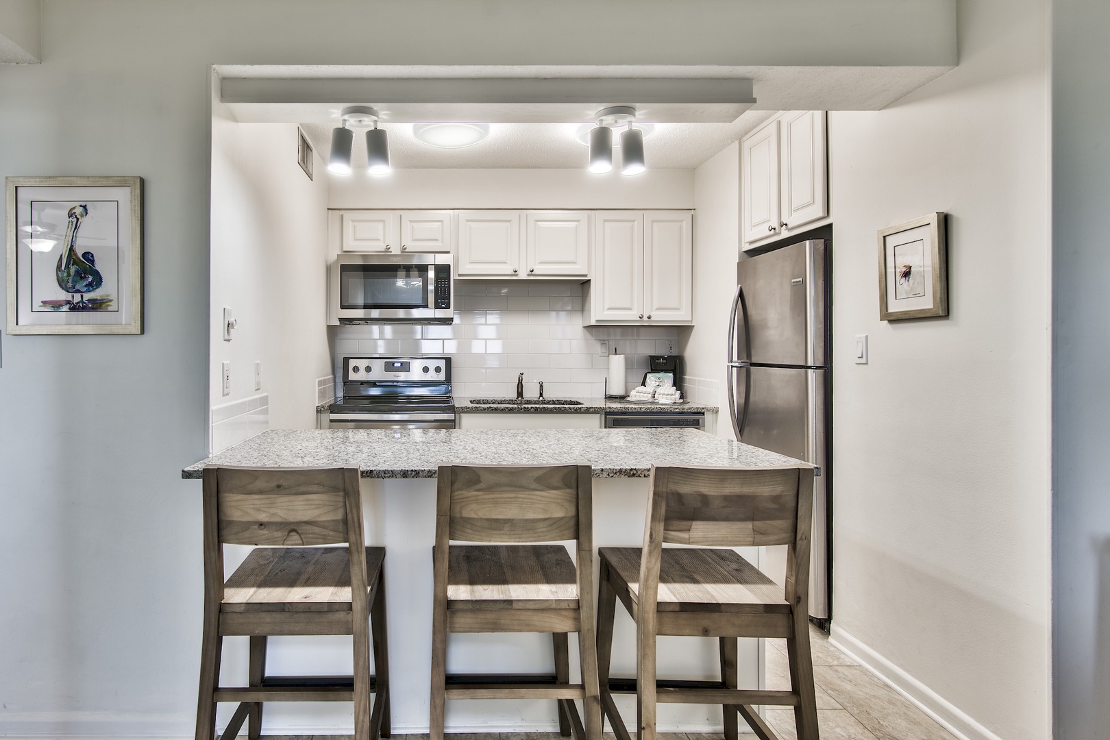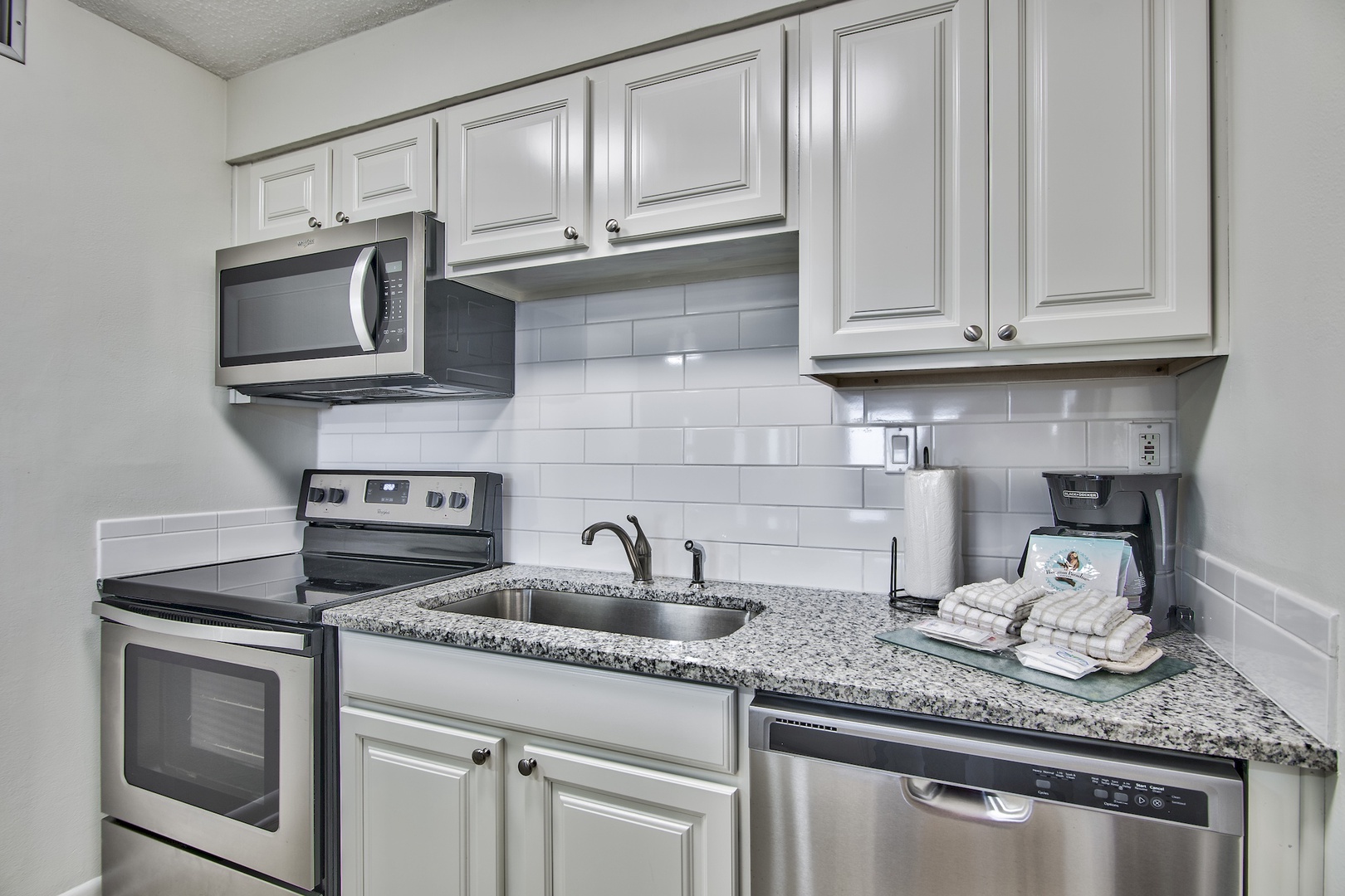 Vacation and relax in a recently renovated two-bedroom condo of the gated Jetty East community. Inside you will find updated interior including granite countertops in the kitchen, luxury vinyl tile flooring throughout and modern furnishings. There is a king size bed in the master bedroom and 2 full beds in the guest bedroom. Prepare your meals in a well-equipped kitchen with stainless steel appliances.