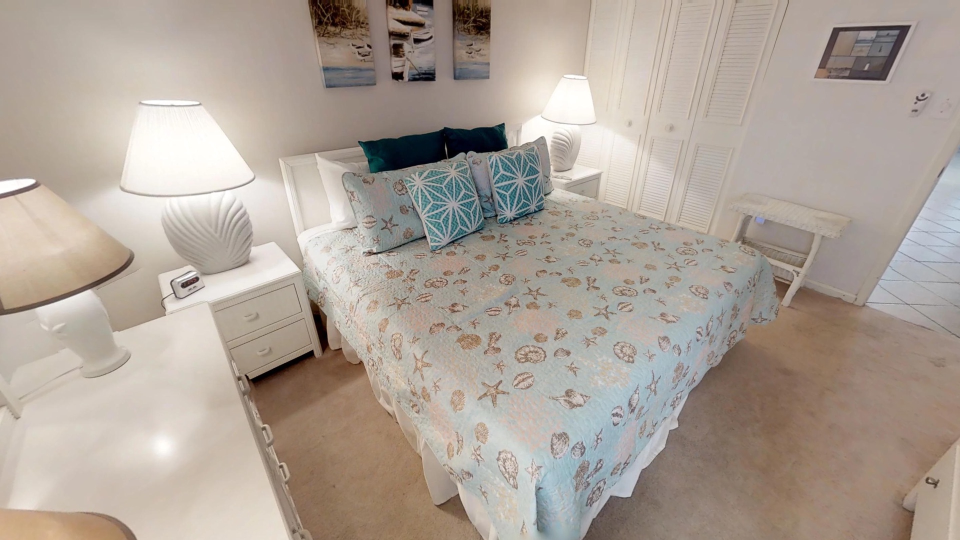 King in bedroom, Queen sleeper and recliner in living room. The glass doors in the living area go out into a sun room with bar height furniture and ceiling fan where you can enjoy the jetty view all year round. Bathroom is equipped with grabber in the combination tub and shower. Ceiling fans in both living and bedrooms. Watch 42 inch TV and blue ray or listen to Sony stereo with iPhone dock in living area. Retire to bedroom to watch 32 inch TV with blue ray/DVD player.