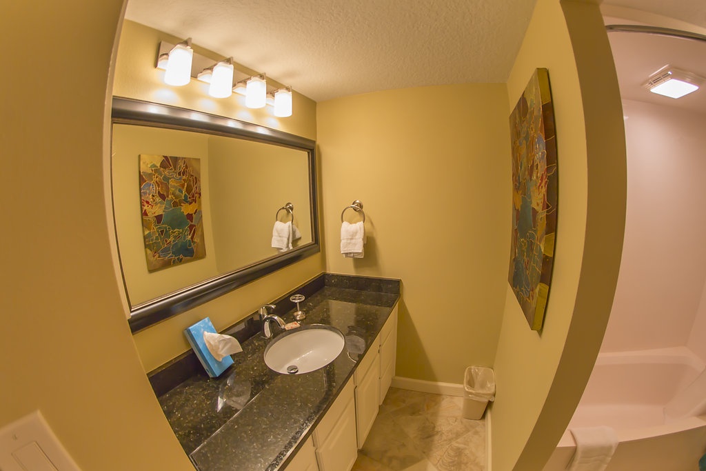 Your entertainment needs are met with a new living room 50 inch LED television/Blu-ray DVD player and a 39 inch LED tv/Blu-ray DVD player in the bedroom. The granite bathroom vanity is comfort height and there is a lighted magnifying makeup mirror and hair dryer for your use. If you have a larger group, book early and reserve the adjoining 2 bed/2 bath unit-- #420B.