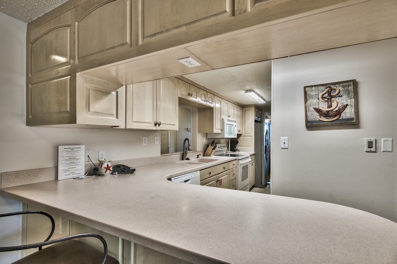 Two living areas will give you and your guests room to spread out and have your own space. You can dine at either of the 2 dining areas or out on the large deck with sitting area for before/after dinner conversation. Comfortable furnishings, with separate desk area that overlooks the gorgeous Jetty view, will assure a comfortable stay. You can enjoy the views from the moment you walk in the front door of this spacious floor plan. There are windows across the back for you to enjoy views of the Harbor, Lake Christina, the East Pass, Crab Island, the most incredible sunsets AND even though 422 is a Jetty view unit, you can see a nice slice of the gulf. Step out onto the balcony from the living room or master bedroom to take in the ocean breeze with a morning cup of coffee. It is also a great place to enjoy the Thursday night air show, and fireworks displays. Make your reservation quick as this one expects heavy bookings this year!