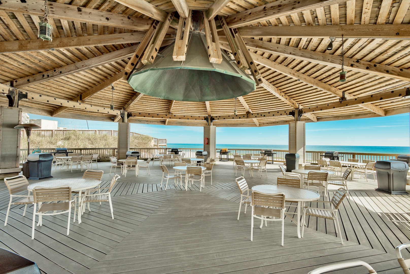 *Beach Front Covered Pavilion w/grills, plenty of tables and chairs for outdoor dining, enclosed sand pit for the kiddos to play in and Live Music on selected nights.