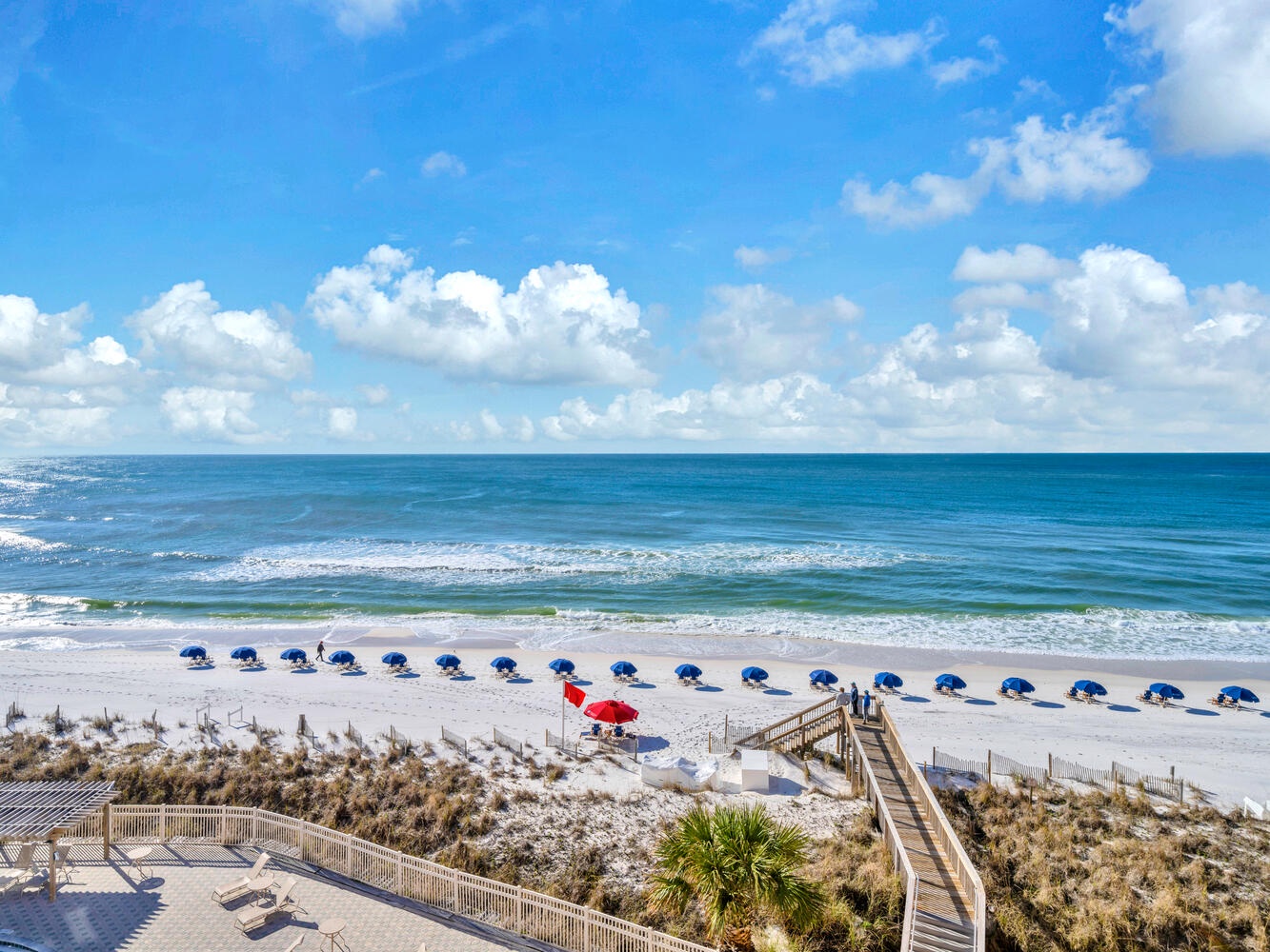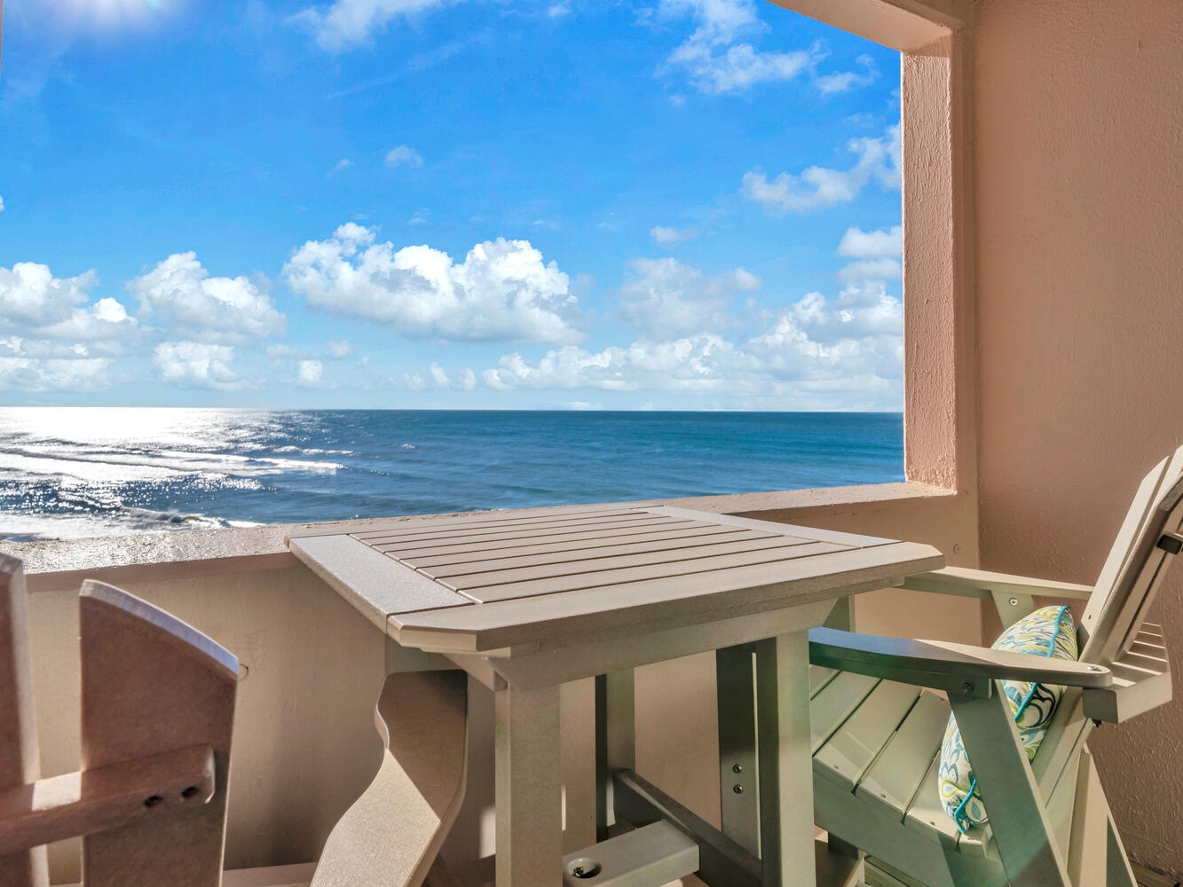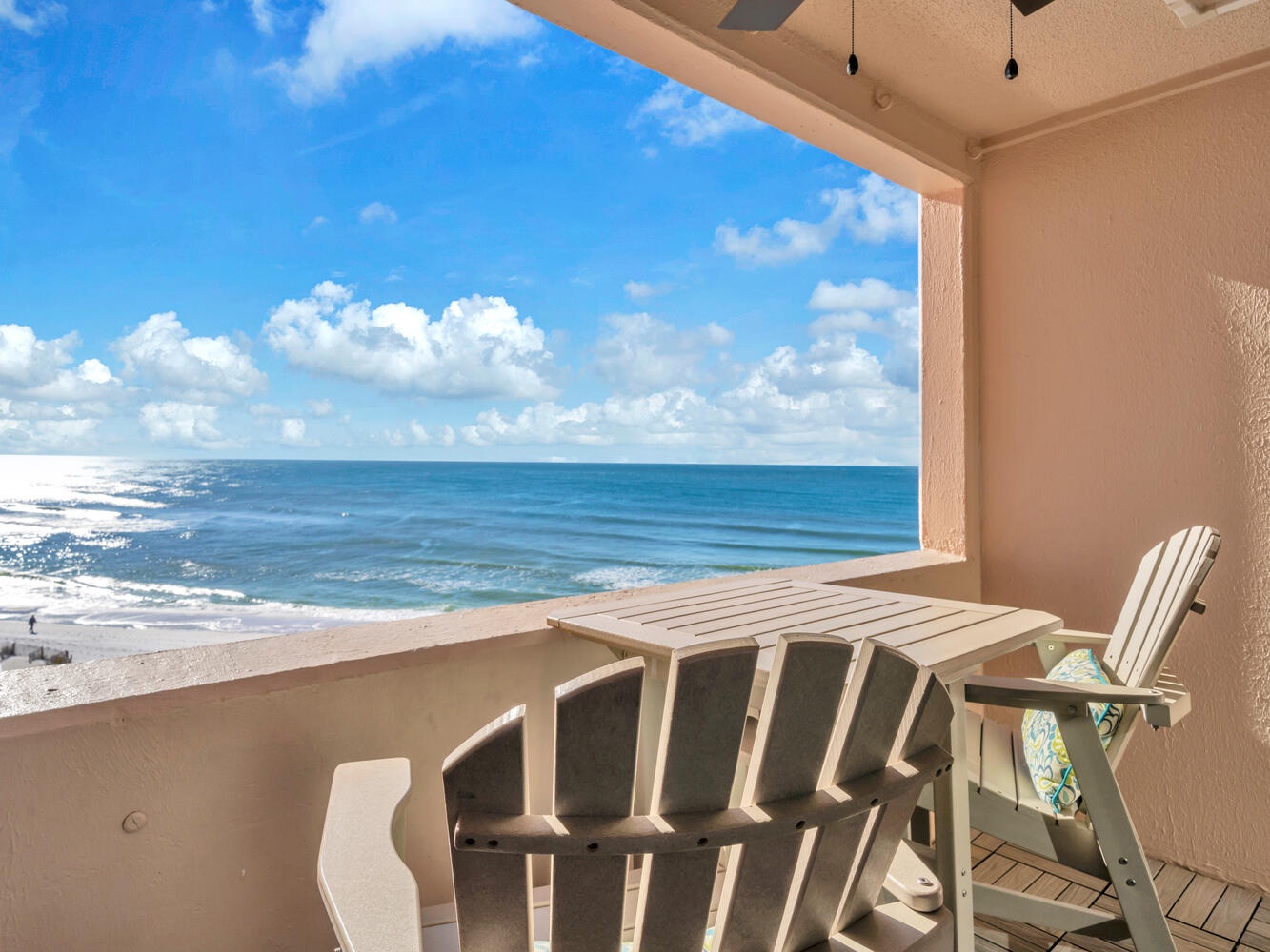 Enjoy the absolutely breathtaking view of the emerald green water and the gorgeous white sandy beach with a great view of the pool to make keeping any eye on the kids a breeze! Beautiful tile floor on balcony with large table, two comfortable Adirondack chairs and two stools, outdoor dining or dolphin watching is a must! This unit is conveniently located near the elevator and is just steps away to the beautiful beach.