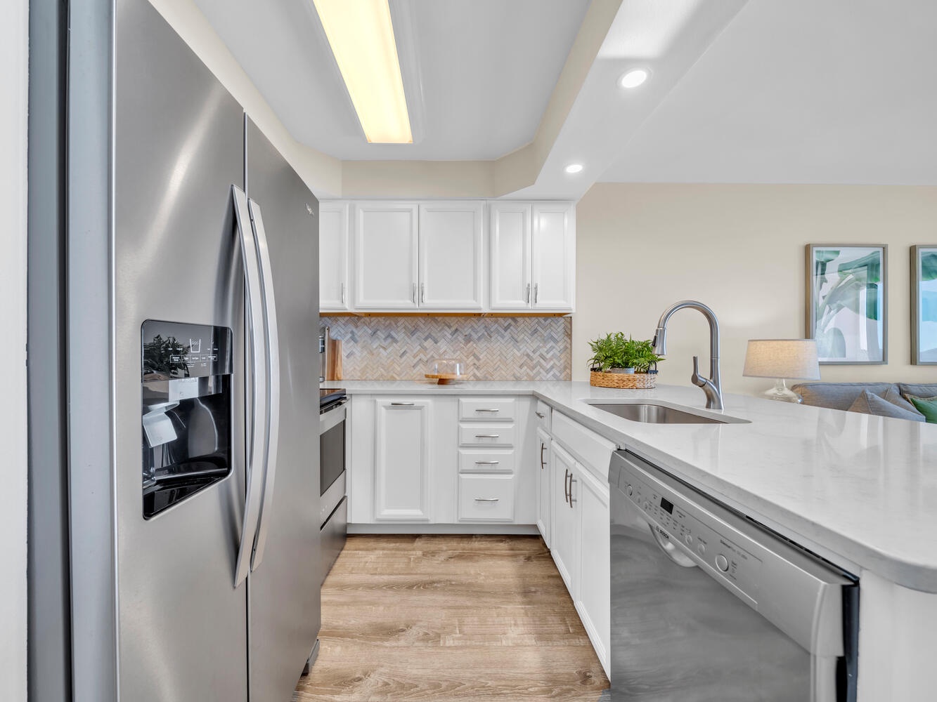 * Beautiful Quartz counter tops in kitchen and bathroom