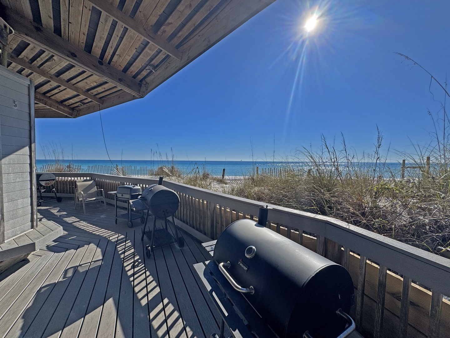 *Beach Front Covered Pavilion w/grills, plenty of tables and chairs for outdoor dining, enclosed sand pit for the kiddos to play in and Live Music on selected nights.