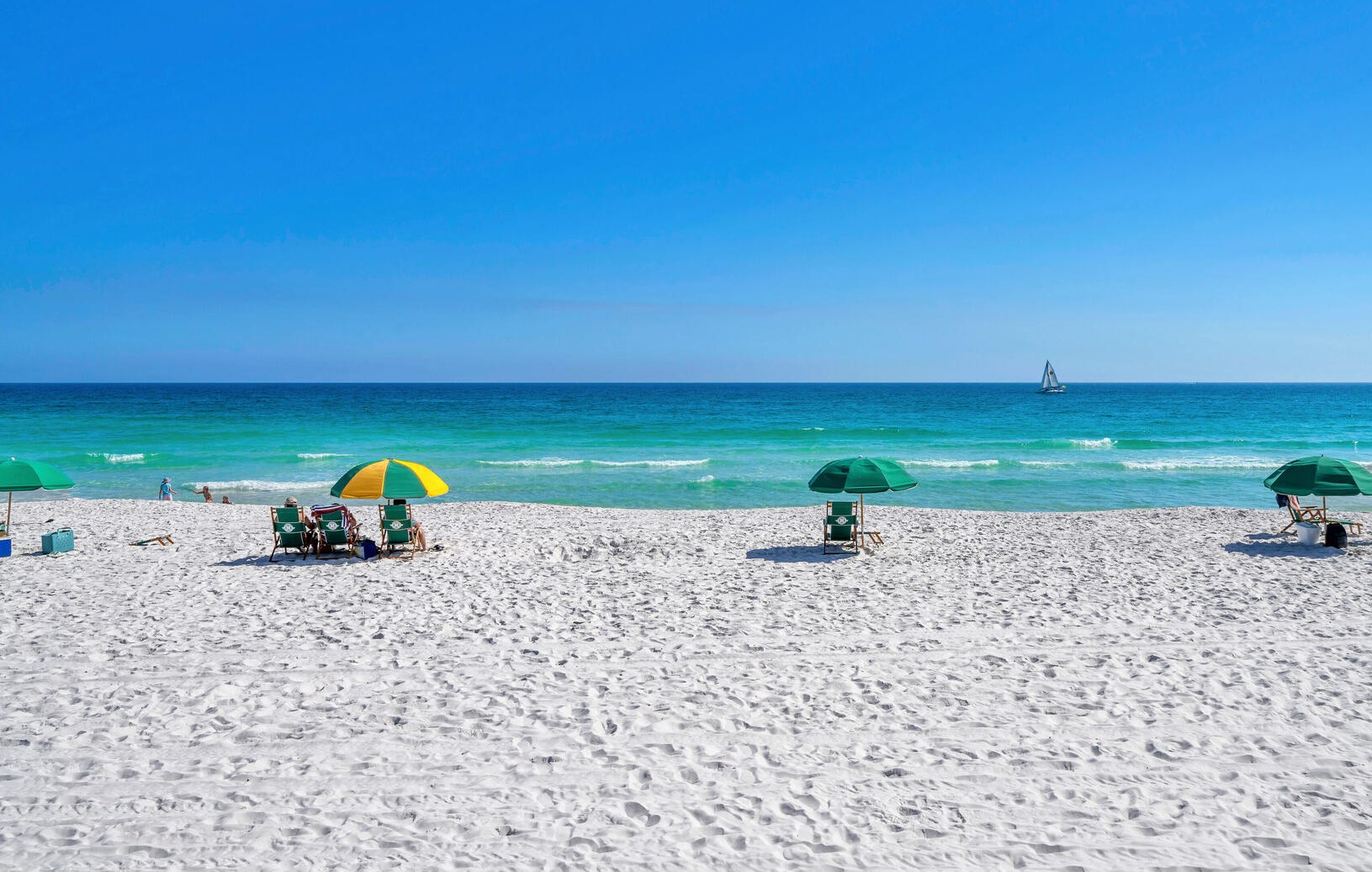 · 2 beach front balconies: Enjoy a one-of-a-kind view. From the “Sunrise Balcony,” view 14 miles of sugar white beaches and the Gulf. From the large “Sunset Balcony,” enjoy spectacular sunsets overlooking the Gulf and Destin’s East pass Jetties and the National Seashore Park. There’s literally nothing like it in all the Emerald Coast.