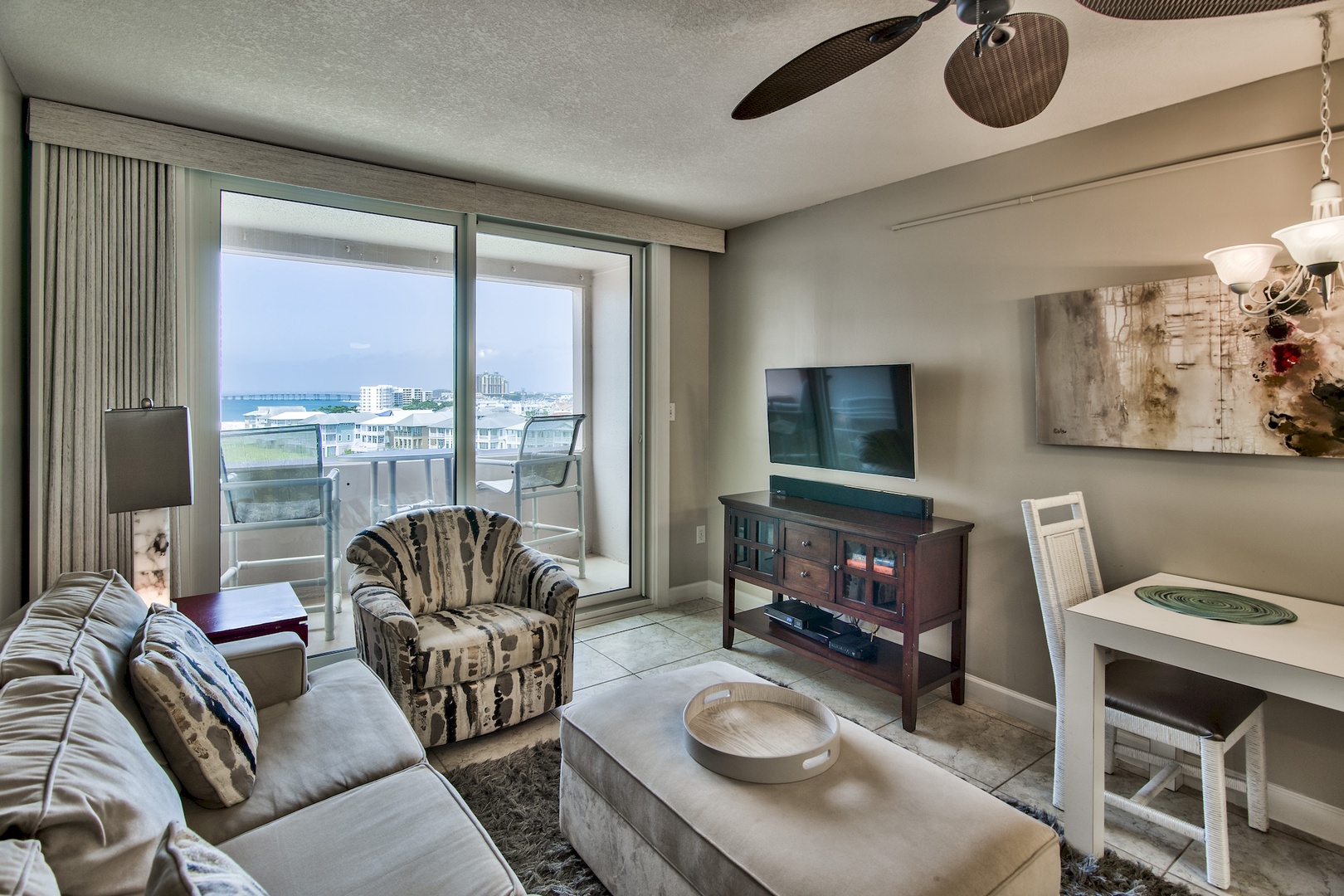 6th Floor, One Bedroom, One Bath, King Size Bed in Bedroom, Queen Size Sleeper Sofa in Living Area. The unit has been painted a welcoming light coastal greige. New Virtual Tour and pictures coming soon. The Kitchen has quartz countertops and all stainless steel appliances. Enjoy breathtaking views of the Gulf, Jetties, the East Pass and the glittering lights of the Destin harbor. The décor exudes an island ambiance to be enjoyed whether for a romantic getaway or a fun packed week with the family.