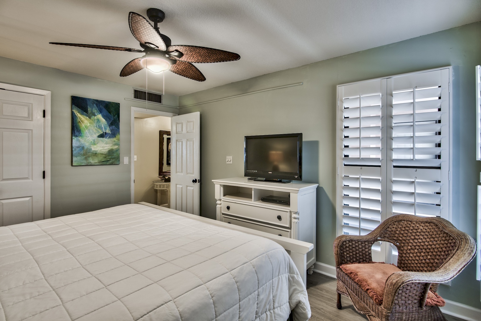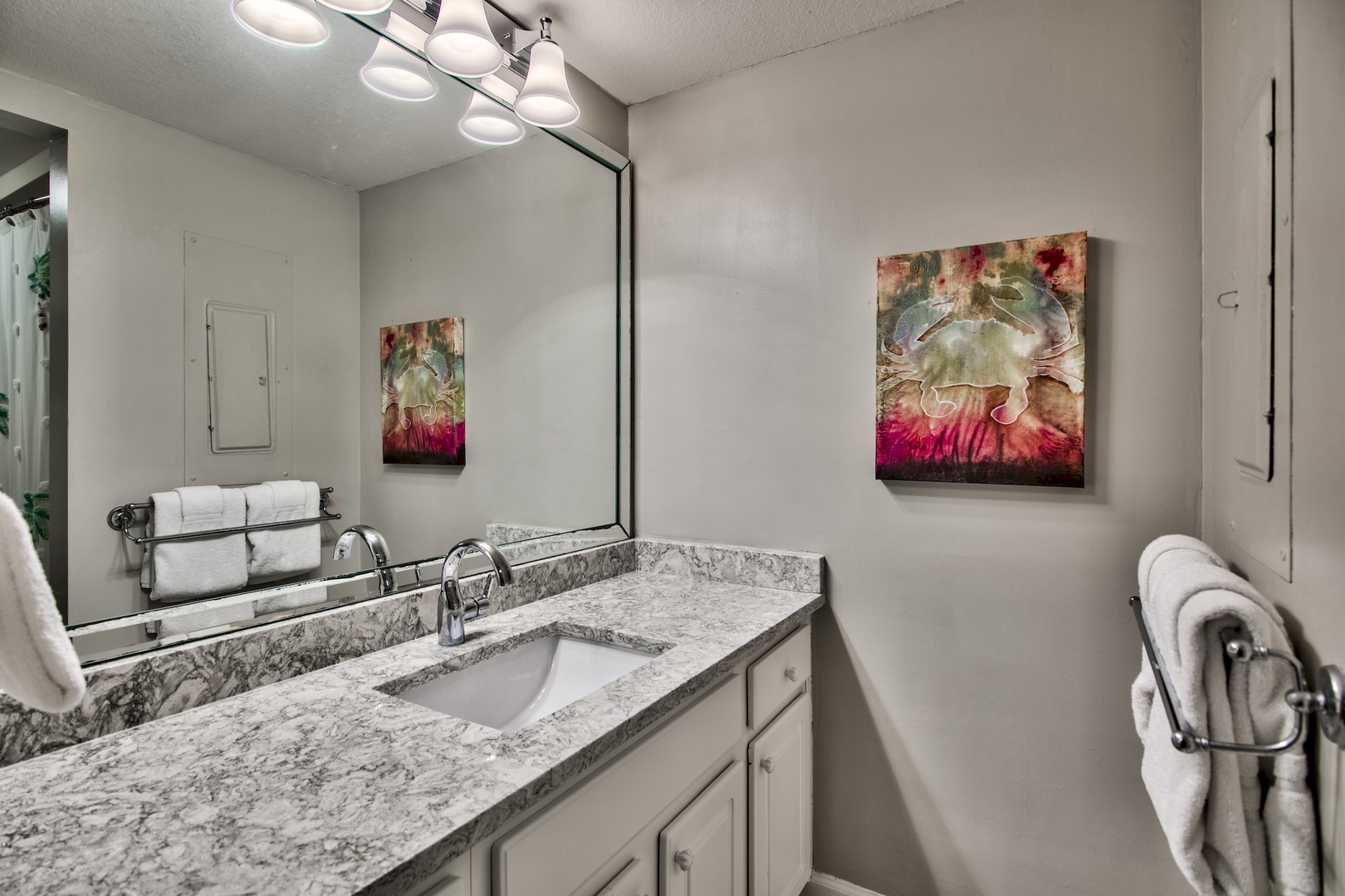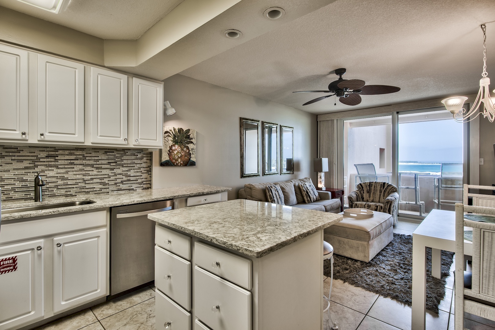 The original art works as well as vintage photos of old Destin by the renowned Arturo Mennillo. Under counter lighting and adjustable overhead help set the mood for those romantic evenings. New flat screen HD/LCD TV and Blu-ray DVD player in living area and bedroom will please those that enjoy quality entertainment. Additional HDMI inputs make it easy to attach your own gaming system for entertainment on those unexpected rainy days. Enjoy your own music from home on sound system with iPod/iPhone docking station. Lighted magnifying makeup mirror and hair dryer will make getting ready for your night on the town a breeze.
