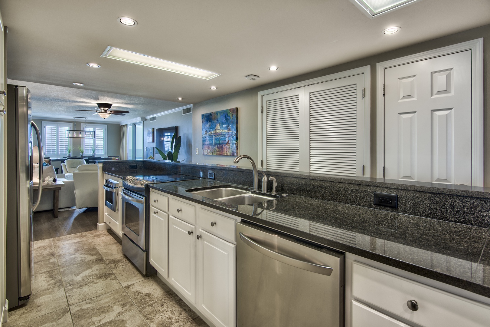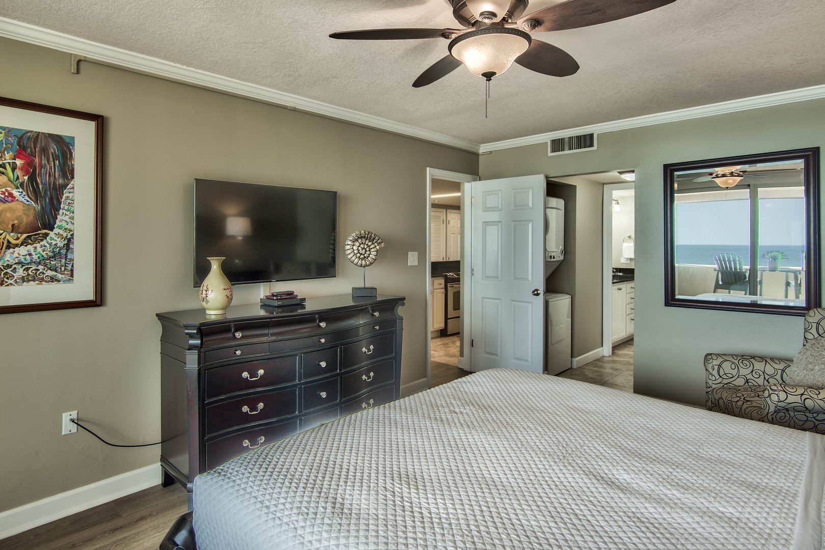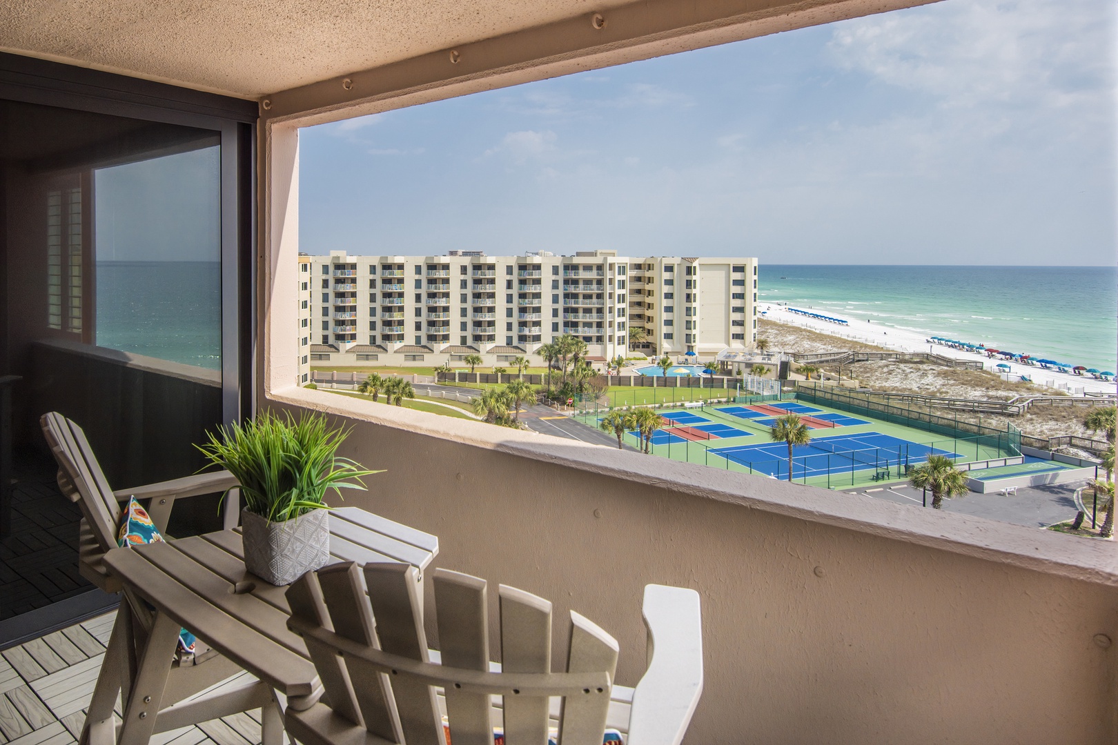 Comfortable seating in both living areas offer plenty of space to relax, and the two leather recliners, are perfect for rainy day movie days. The 2 open balconies allow you to enjoy all the gulf has to offer even before stepping foot into the sand. Clear views of the water, the Pavilion, Swimming pool, tennis courts and shuffle board courts will insure you won’t miss a thing during your memorable stay.