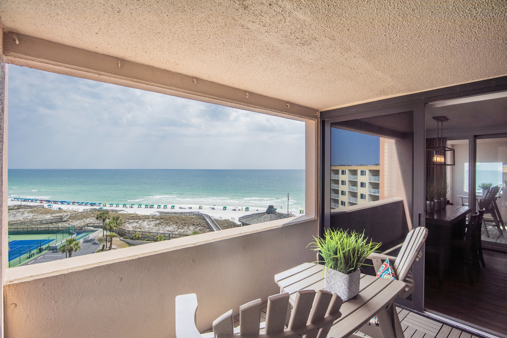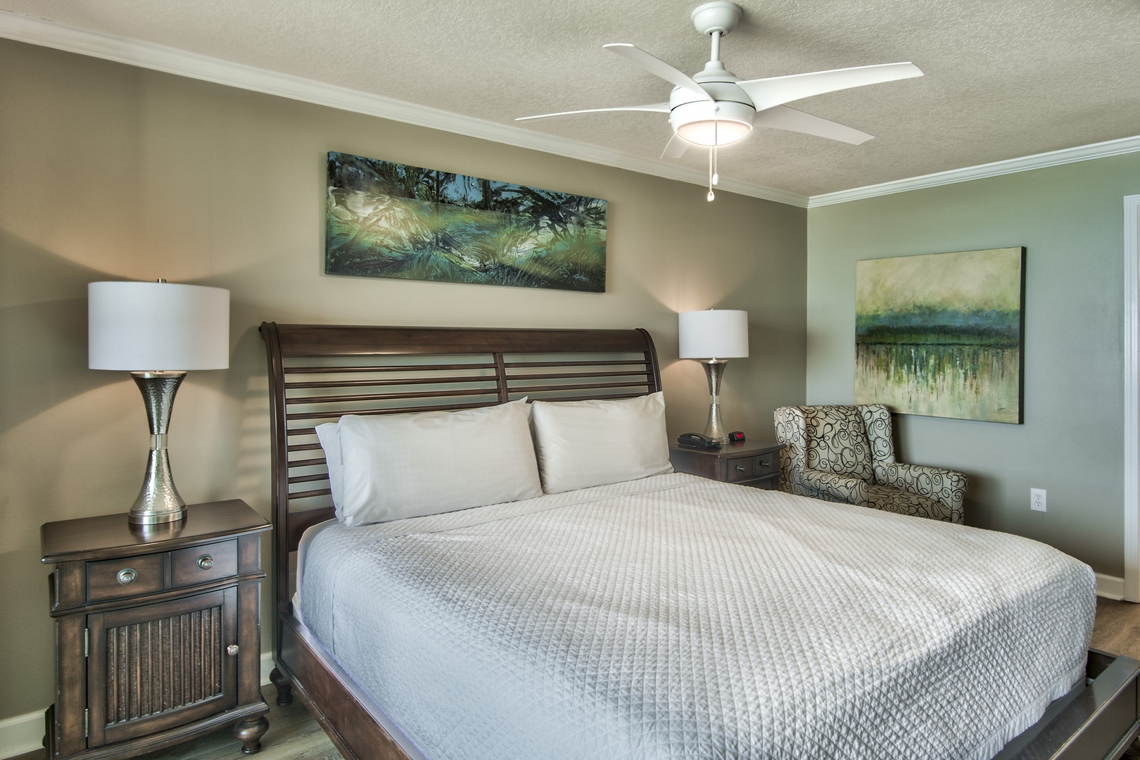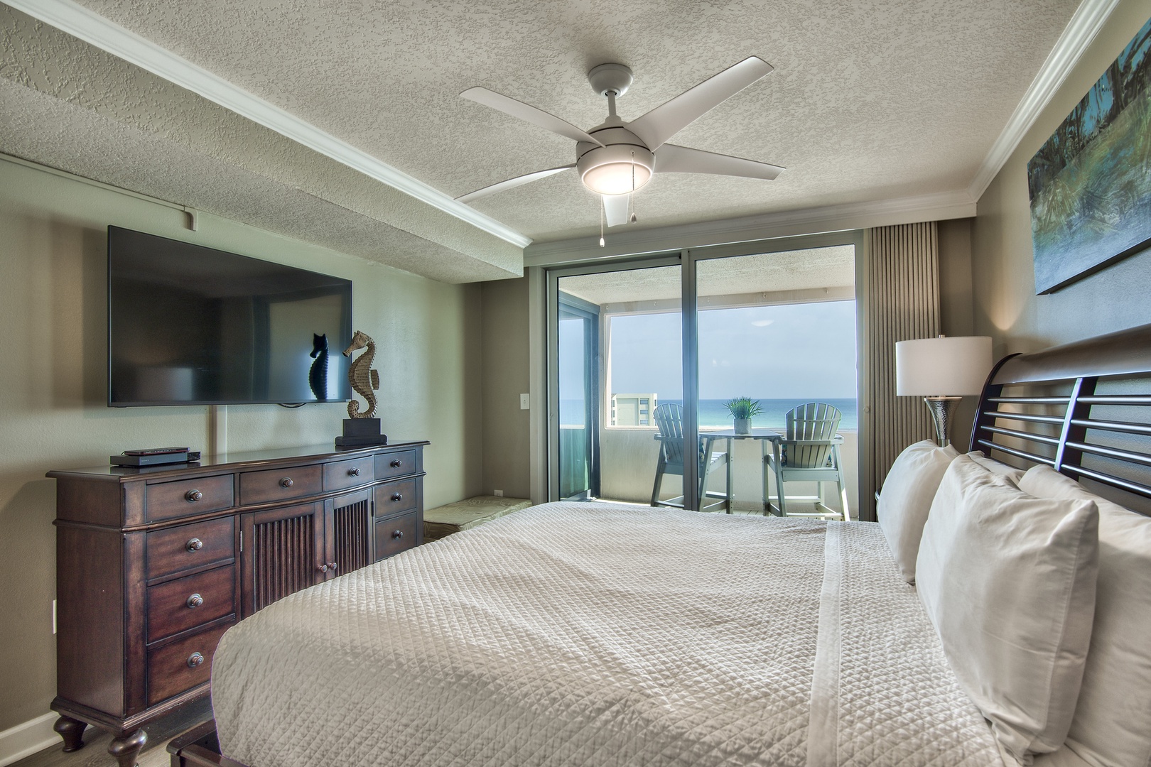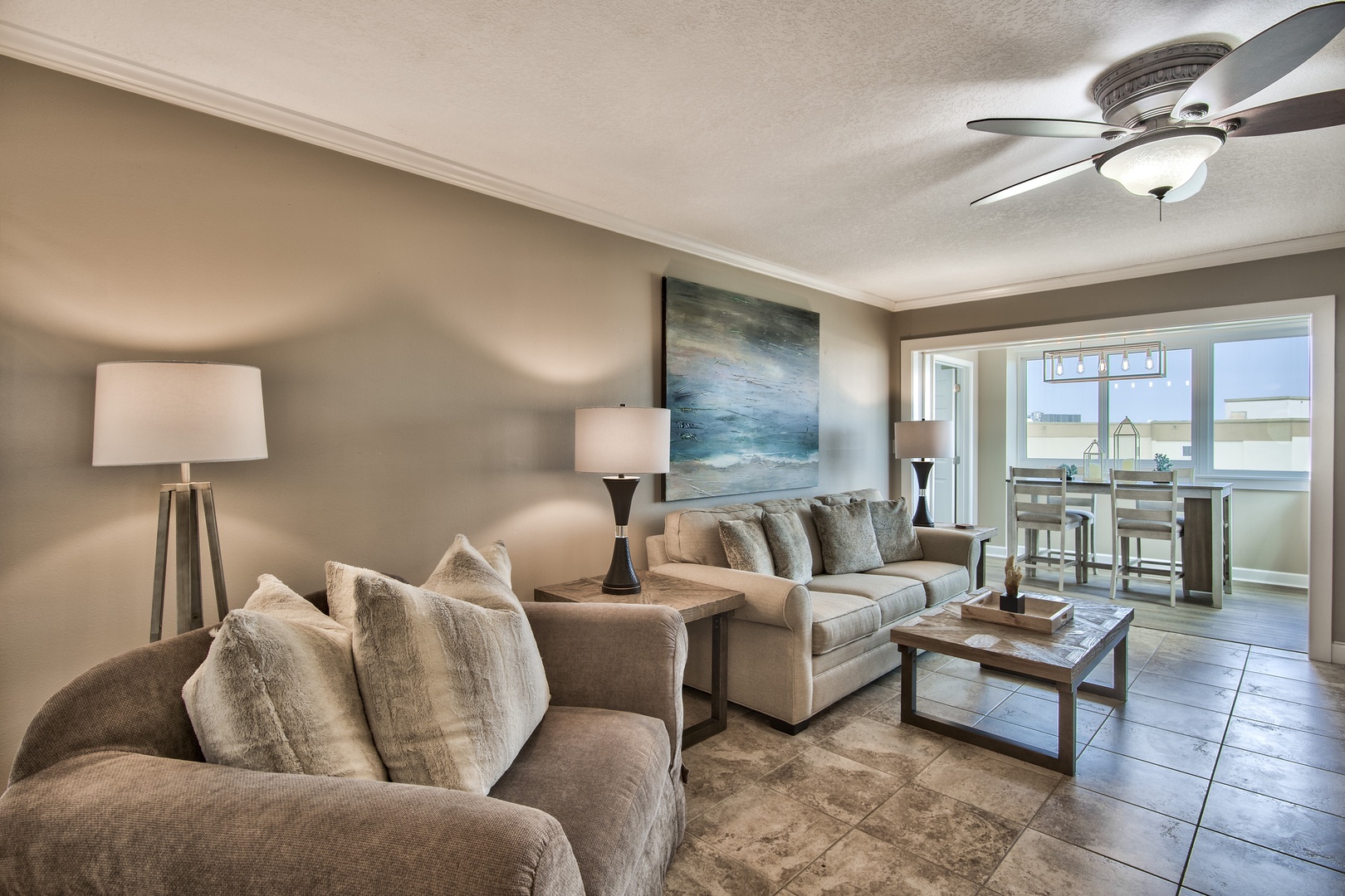 Comfortable seating in both living areas offer plenty of space to relax, and the two leather recliners, are perfect for rainy day movie days. The 2 open balconies allow you to enjoy all the gulf has to offer even before stepping foot into the sand. Clear views of the water, the Pavilion, Swimming pool, tennis courts and shuffle board courts will insure you won’t miss a thing during your memorable stay.